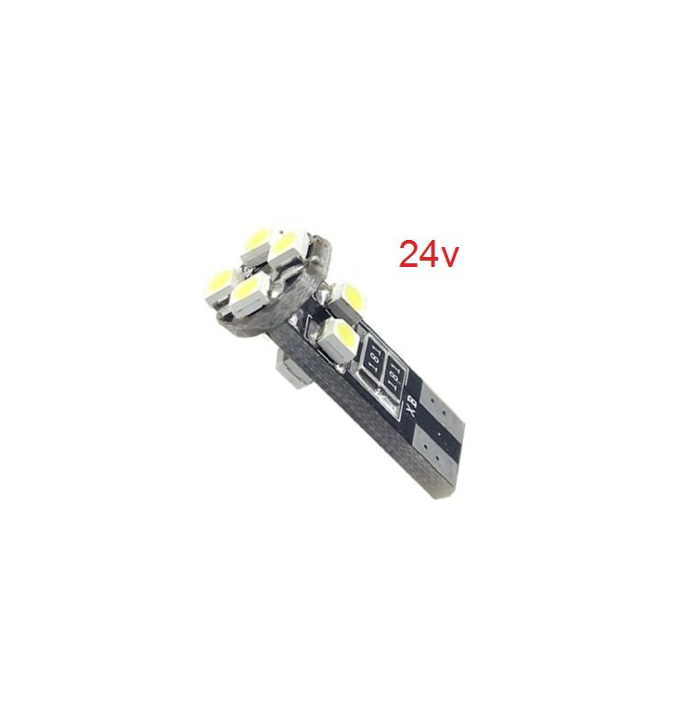 W5W T10 com 8 LEDS SMD 3528 CANBUS 6000k - 24v