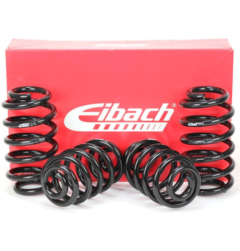 Eibach PRO-KIT é um kit de molas que pode ser usado com os amortecedores originais ou com amortecedores melhorados de outras marcas. Este kit melhora o comportamento em curva, em mudanças rápidas de direcção e em curvas a alta velocidade, sem comprometer o conforto. Além disso mantêm uma relação equilibrada entre "look" desportivo, segurança e maiores performances, enquanto que oferecem maior prazer na condução. Molas progressivas, confortáveis em condução normal, combinando melhores prestações em condições mais desportivas, com menor adornamento da carroçaria em curva. Pintura de Alta qualidade Anti-Corrosão, com qualidade Alemã TUV
