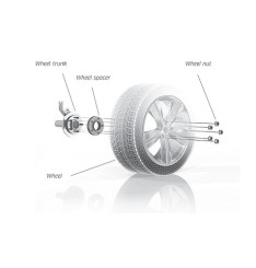 A fixação dos espaçadores ao cubo original da viatura é feita com os pernos especiais fornecidos. Depois a jante aperta no espaçador com os pernos originais da viatura.