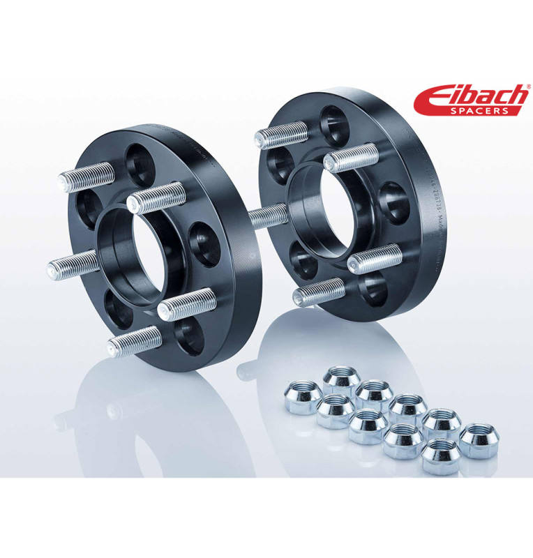 Os espaçadores Eibach Sistema 4 incluem pernos cravados e fêmeas, prontos aplicar.