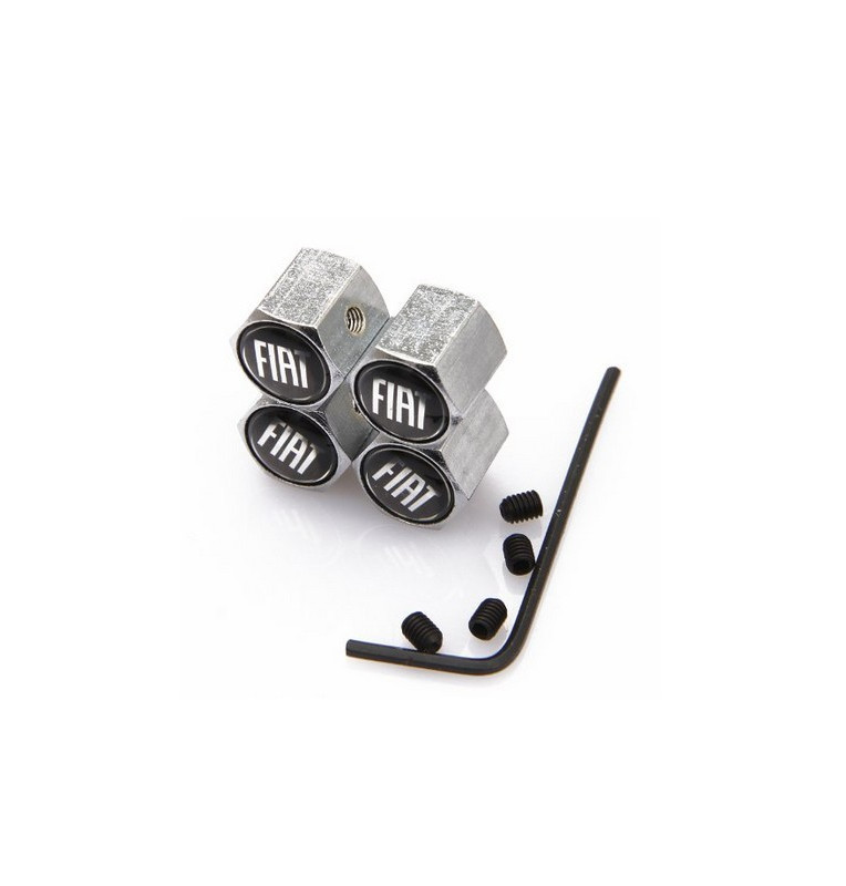 Tampas para Válvulas de Jantes - Com Anti-Roubo - Logo Fiat Fundo Negro