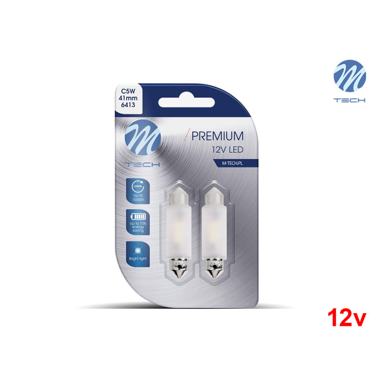 Lâmpadas LED Tubular C5W 41mm Canbus 3x SMD 2835 White Premium 12V M-Tech - Pack Duo Blister