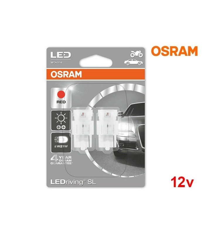 Lâmpadas LED W21W Vermelho Osram LEDriving SL - Pack Duo Blister