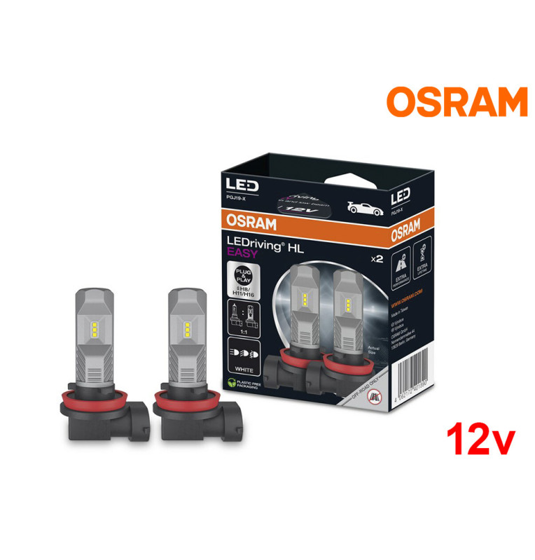 Com a sua solução baseada no casquilho, os retrofits OSRAM LEDriving HL EASY fornecem uma substituição LED ultracompacta das lâmpadas convencionais H8 / H11 / H16 com luz LED branca fria proporcionando também uma aparência elegante como brilho superior.