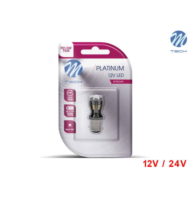 Lâmpada LED BAY15D P21/5W 14xSMD2835 Canbus Branco Platinum 12V-24V M-Tech - Pack Individual Blister