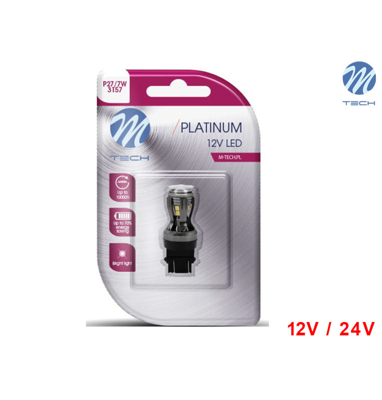 Lâmpada LED P27/7W 3157 Canbus 14x SMD 2835 Cool White Platinum 12V-24V M-Tech - Pack Individual Blister
