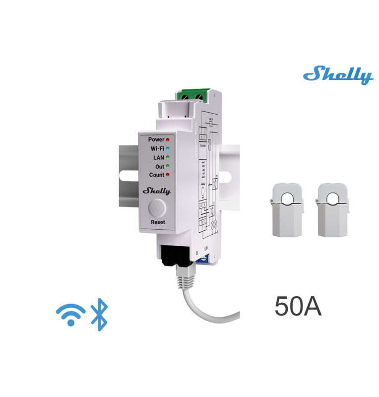 O Shelly Pro EM-50 é um medidor de energia monofásico de dois canais, montável em calha DIN. Melhorado com toda a flexibilidade do firmware gen2 e conetividade LAN, ele fornece aos integradores profissionais, opções adicionais para soluções de clientes finais.