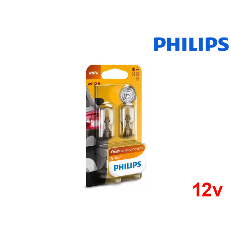 Lâmpadas Halogéneo W16W W2.1X9.5d 16W 12V Philips Standard Original - Pack Duo Blister